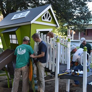 Friends of Lebanon Recreation, Arts, & Parks assist Lebanon Plays with fundraising and installation of 2 new playhouses in Colburn Park.